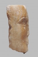 A harmadik szobor, a férfi-arc, csak az áll alatti részében töredékes. Hátsó oldala és az egyenesre levágott fejtető érdes felülete eredeti elhelyezésére utal: mintegy méternyi magasságú mészkőlapban kivágott fülkébe helyezték el, és gipsszel ágyazták be a sztélébe, amelyen a fej fölött felirat nevezte meg a halottat, akinek állították. Teljes példányok százával kerültek elő főleg Sába és Kataban temetőiben. Többnyire a 2-1. századra keltezik őket. Jellegzetes a pontozással jelzett bajusz és szakáll; a pupilla felülete színes kő vagy üvegpaszta berakására van kiképezve, és ugyanilyen díszítés tölthette ki a szemöldök árkait is. A tengeri út megnyitásával megélénkülő kapcsolatok a Földközi-tenger kultúráival a hellénisztikus hatások mind erősebb érvényesüléséhez vezettek Délarábiában. A Kr.e. 3. századtól importált műtárgyak hatása a Kr.u. 1-2. században lassanként fölébe kerekedett a helyi művészi formáknak, és egy erősen hellénizált produkció kialakulásához vezetett. Ennek összetevőit jellemzően mutatja egy Sanaa, a volt Sába, ma Jemen fővárosa közelében előkerült 2-3. századi lelet: két király monumentális szobrának töredékei, rajtuk bevésve a görög mester, Phókas, és a helyi bronzöntő, Lahayamm nevével.
